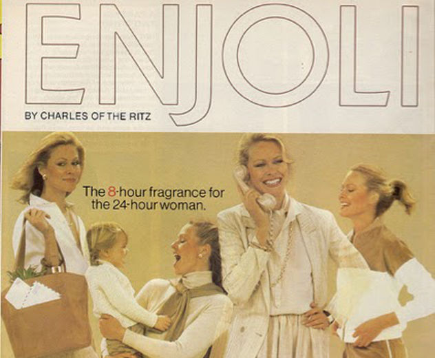 Obviously this ad wasn’t just selling perfume. It was selling the you-can-have-it-all lifestyle to a new generation of women who had previously been shut out of serious positions within corporate America and were largely relegated to the domestic realm. But thanks to the women’s lib movement of the 1970s, now both realms were open to women — at the same time. This commercial was more than just a commercial; it was a sign of the times.