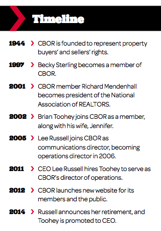 Having been a Realtor himself, Toohey says he also brings a unique perspective to the role. Not only is he informed about local, state and national issues affecting Realtors, but he also says he can see things from a board member’s view, a quality Sterling says was particularly important for CBOR’s new CEO.