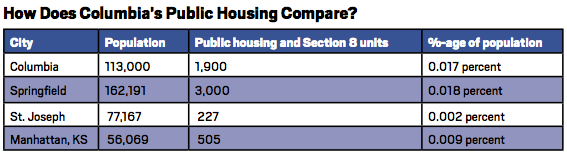 In Columbia there are waiting lists for both public housing and the Housing Choice Voucher Program. The federal government isn’t increasing its funding to the local public housing authority, so the pool of publicly assisted renters will not increase.