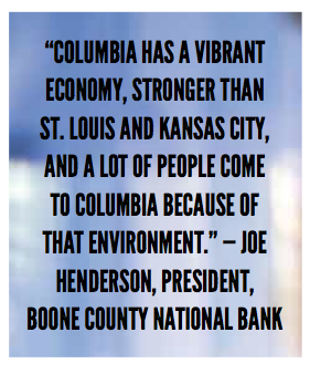 “Columbia has a vibrant economy, stronger than St. Louis and Kansas City, and a lot of people come to Columbia because of that environment,” he says.