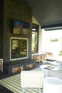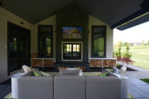 On a windy morning in May we headed out to the Copperstone neighborhood in southwest Columbia to the Grathwohl’s home. As we walked along the north side of the home, we were blown away by the architecture and detail this home had. As we rounded the back of the house to the patio, it was clear that this family loves to entertain and spend time outdoors. Their backyard is perfect for their girls to run and play while the covered patio is ideal for entertaining friends, catching a movie outside on the big screen or throwing some barbecue on the grill. Erdos at Home did the outdoor furniture and accessories, and it was clear they had entertaining in mind! The large grey couch with colorful throw pillows in front of the fireplace would be a perfect place to sit on a cool evening or catch a baseball game on TV. The gorgeous architecture we noticed as we pulled up to the home continued to the patio with a tall, vaulted ceiling and beautiful beams. Everything from the ground up was done in perfect detail from the stone of the fireplace to the landscaping. Thank you, Grathwohl family, for letting us photograph your beautiful space!