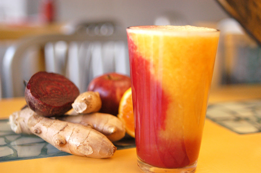 LL: Well, smoothies are cool because you get the fiber, you get the whole plant in the smoothie. When people drink juice, they’re primarily going for the nutrients and not the fiber, which is fine except for that with the smoothies, you have the balance of sugars from the fruit with the fiber of the fruit, which is better for your digestion and fills you up more. It has less sugar than fresh juice, and you can put crazy amounts of nutrient-dense foods in smoothies. Kale would be the most popular thing people add to smoothies. It doesn’t change the flavor or texture very much but it packs a powerful amount of nutrition.