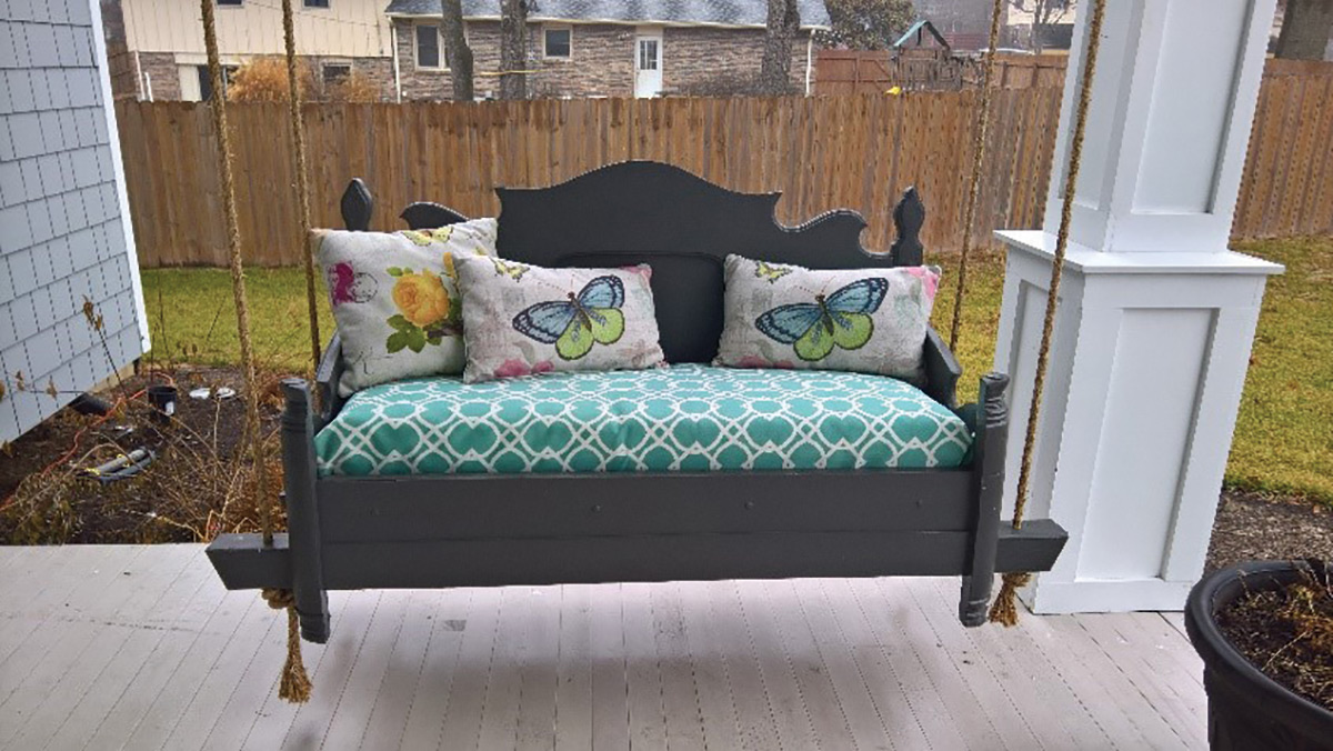 Thanks to my construction-savvy husband, we took an old walnut bed frame ($10.00 at a garage sale) and turned it into a perfect-sized porch swing. Relaxing with my family is now a true joy. Maybe someday I’ll swing with my grandchildren and continue the tradition I started with my pappy.