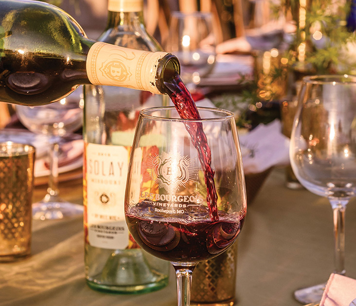 Along with specialty drinks, it’s good to have wine on hand for those wanting to keep it simple. “Our most popular wine is definitely our Riverboat Red,” says Mary Lathrop, private events director for Les Bourgeois. “It’s a tantalizing blend with aromas of raspberry and cherry. This chilled sweet red wine dazzles the palate with layers of ripe fruit.”