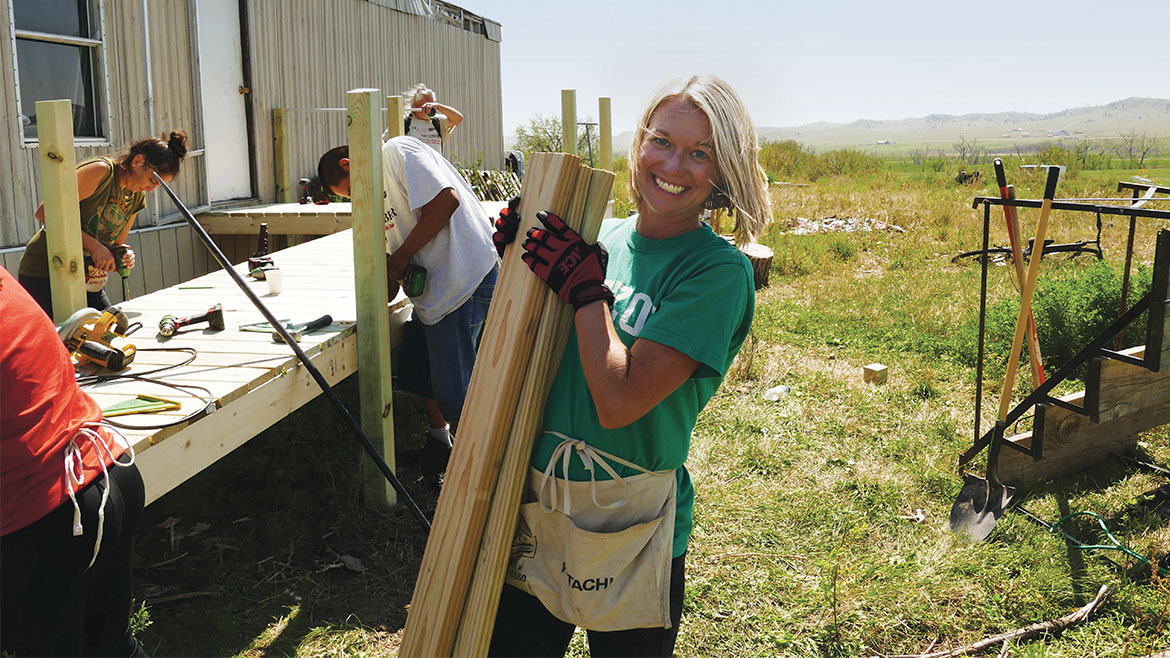 Employees from Veterans United Home Loans traveled to the Pine Ridge Reservation in South Dakota to assist the Oglala Lakota people in improving their reservation. During the week-long trip, 16 employees assisted with general home repairs and built outhouses, bunk beds, wheelchair-accessible ramps, and porches.