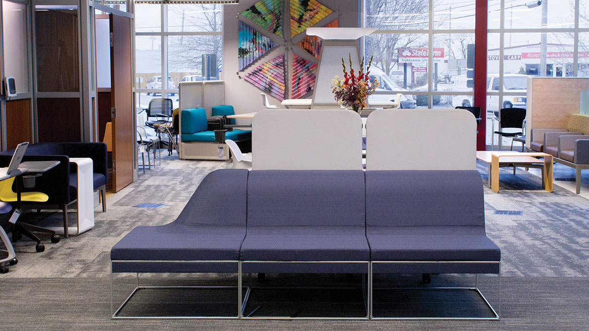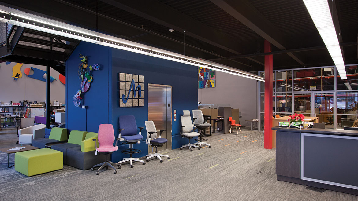 Wolff started Marathon in 1987 as a Xerox vendor. Over the years, the company morphed into a commercial interiors business that now includes office furniture, commercial flooring, and a window treatments division. They are also the Steelcase dealer for Mid-Missouri. “Steelcase is the largest manufacturer of commercial furniture in the world,” Sovich says.
