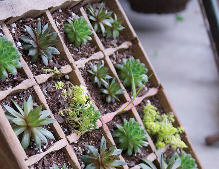 When arranging plants in a container, Steven and Amy encourage you to remember the “thriller/filler/spiller” rule. “First choose a tall centerpiece plant that wows, followed by a medium-height plant to fill in and a cascading plant that spills over the edge of the container,” the couple says.