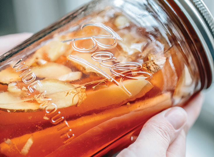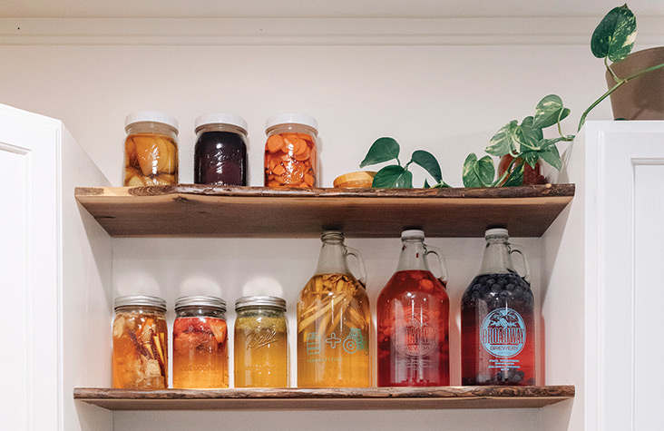 “It’s nice not to ever waste anything if you don’t have to,” Jared says. “So that’s another thing about making kombucha and shrubs — if I have something that’s about to go bad, instead of throwing it out, I still have a use for it.”