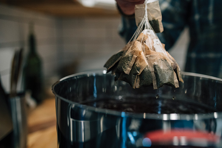 Jared credits the spike in wellness not just to the fermented tea, but to already-present health enhancers in the later-added ingredients. “There are definitely some probiotics in kombucha, which are very good for your digestive system,” he says. “Depending on an ingredient that you use, like when I use turmeric, the properties can change a kombucha. So say you’re using blueberries; blueberries have their own antioxidants in them and are really good for you, and so I think some of that is imparted in the kombucha, and then the other parts of it from the SCOBY and fermentation are also good.”