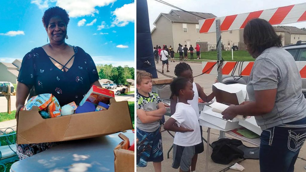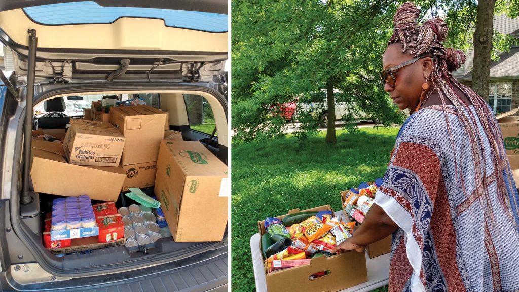 “We have families that are just needing food, but a lot don’t have transportation to get to food pantries,” Sophia says. “If you get there on a bus, you can’t bring a lot of stuff back home on the bus. I’m trying to be hands-on and reachable so we can make these things happen. Take what you got and use it. I’m using what’s available — the cul-de-sac and my front yard.”