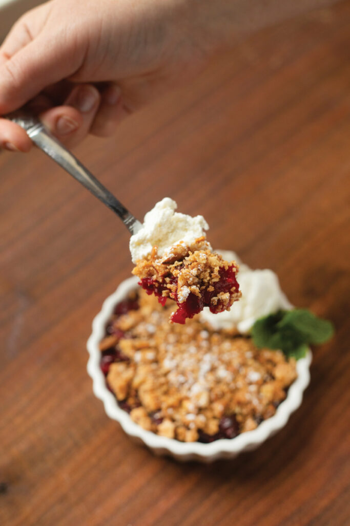 David Ivancic, head chef at Sycamore, learned his favorite holiday recipe ten years ago from a pastry chef, but he did not return to that recipe until last year, when he truly made it his own. It was then that the cranberry crisp was born!