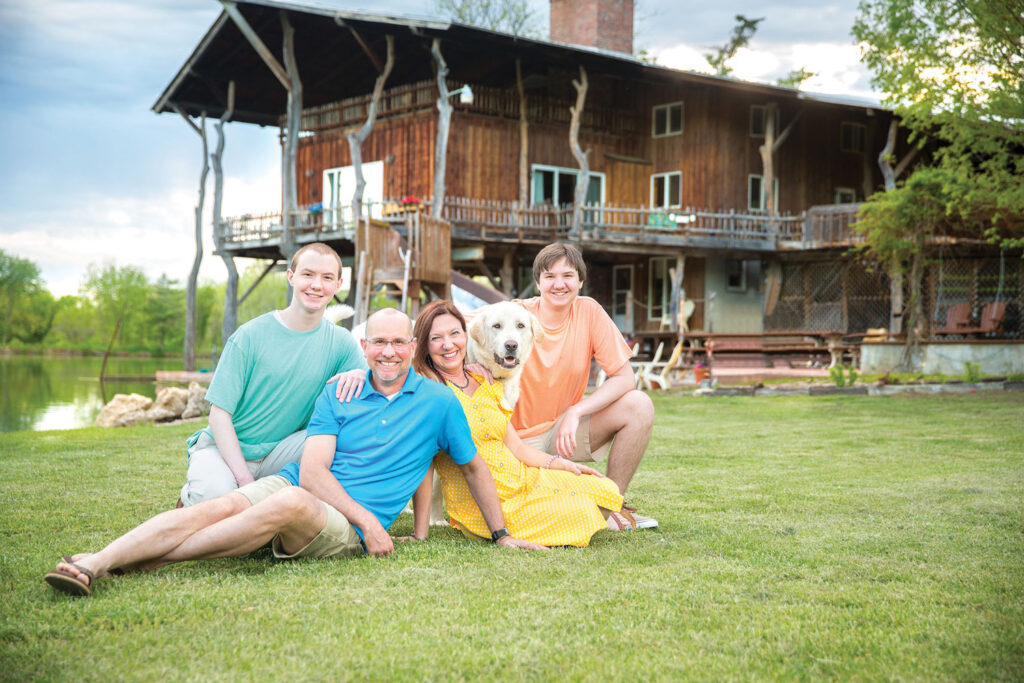 Your trip to solitude begins when you pull off State Route W onto County Road 400 and down the long gravel drive to Breathe. The enormous home and its lake emerge into view on your left, breathtaking. As you cross the little wooden bridge over the lake and up to the house, you are likely to be greeted by one, if not both, of the Topashes’ enormous white abkashes, a Turkish breed of herding dog that can grow to 140 pounds, or by the family’s herd of Norwegian dwarf goats, whose milk Catina uses to make cheese. (She also uses them in goat yoga.) A number of chickens running about provide fresh eggs.
